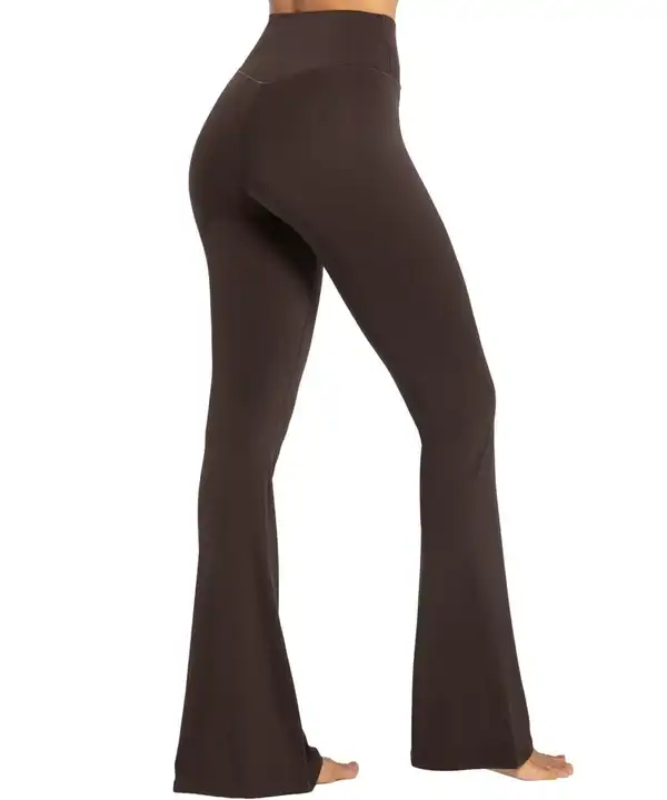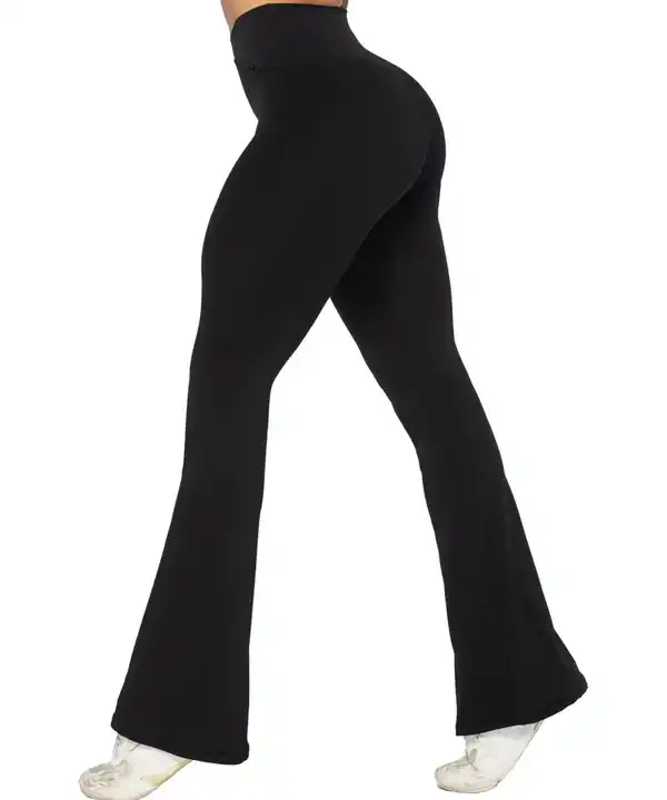 These leggings offer a fashionable twist with their flare design and crossover waistband, providing both comfort and a flattering fit. The soft fabric ensures ease of movement, making them perfect for both workouts and casual outings.